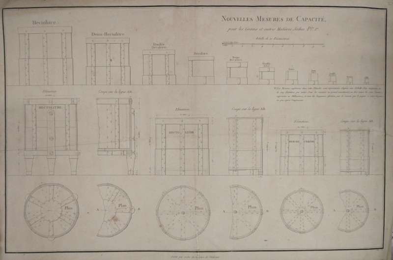 Antique print Nouvelles Mesures de Capacité pour les Grains et autres Matièries sèches | ||||||||||||||||||