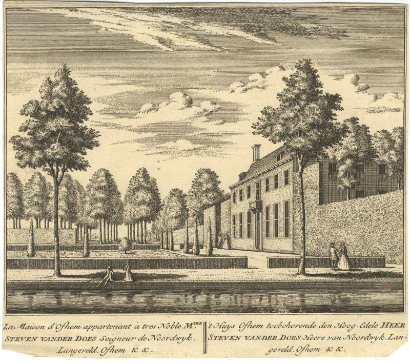 Antique view ´t Huys Ofhem toebehorende den Hoog Edele Heer Steven vander Does Heere van Noordwyk, Langevel (Noordwijk in Zuid-Holland) | ||||||||||||||||||