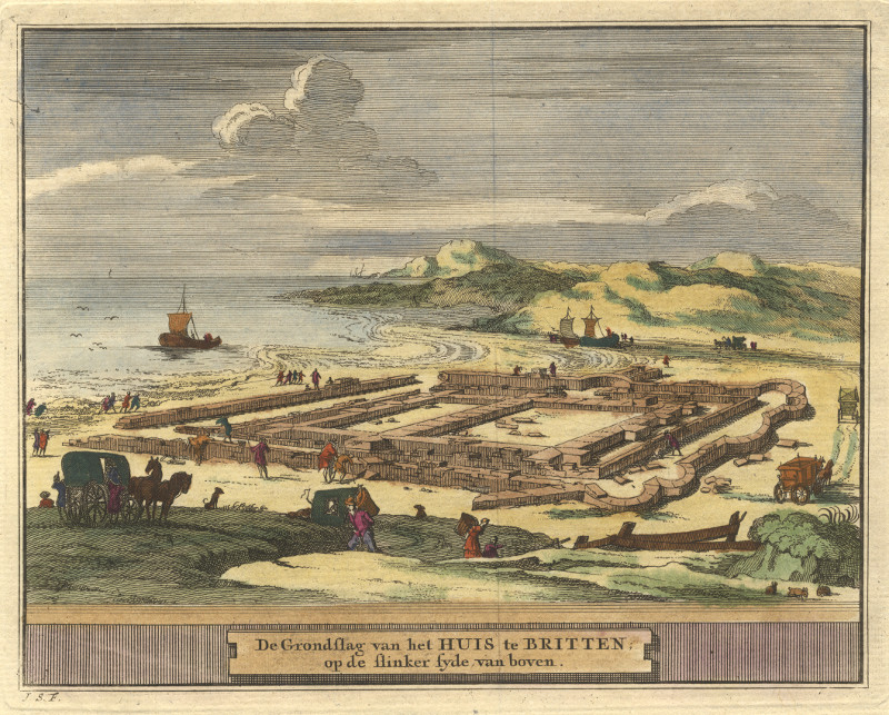 Antique view De Grondslag van het Huis te Britten; op de slinker syde van boven (Katwijk in Zuid-Holland) | ||||||||||||||||||