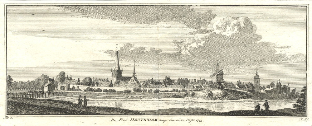 Antique view De Stad Deutichem langs den ouden Yssel 1743 (Doetinchem in Gelderland) | ||||||||||||||||||