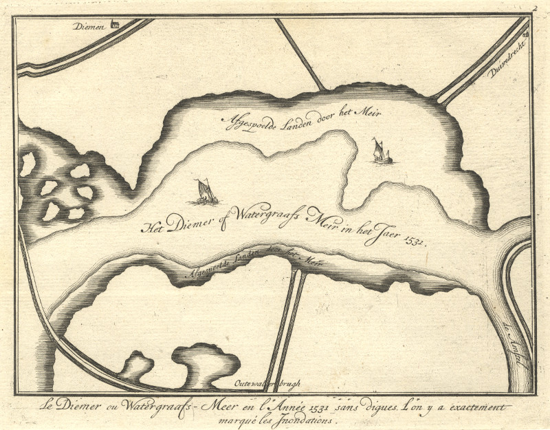 Antique plan Het Diemer of Watergraafs Meir in het Jaer 1531 (Amsterdam in Noord-Holland) | ||||||||||||||||||