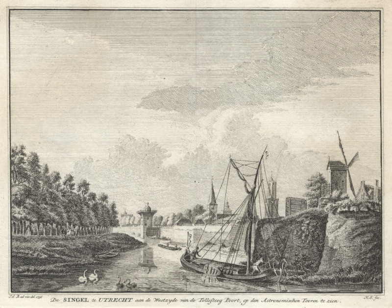 Antique view De singel te Utrecht aan de Westzyde van de Tollesteeg Poort, op den Astronomischen Tooren te zien (Utrecht in Utrecht) | ||||||||||||||||||