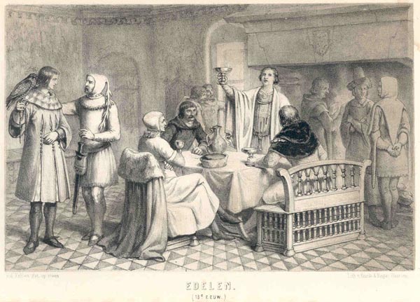 Antique print Edelen (13e eeuw) | ||||||||||||||||||