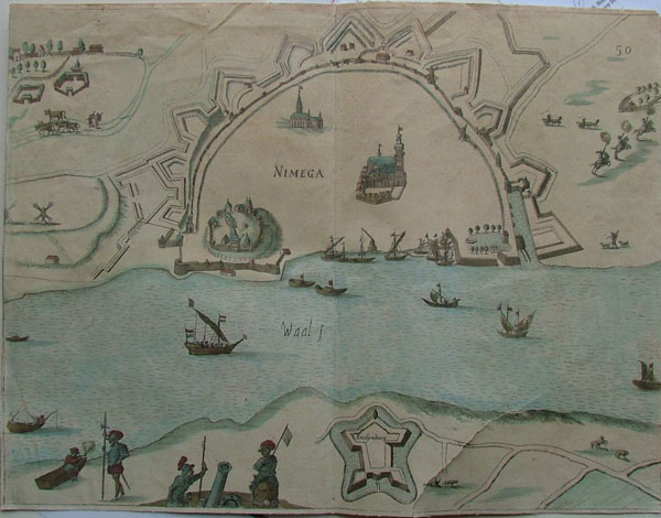 Antique plan Nimega (Nijmegen in Gelderland) | ||||||||||||||||||