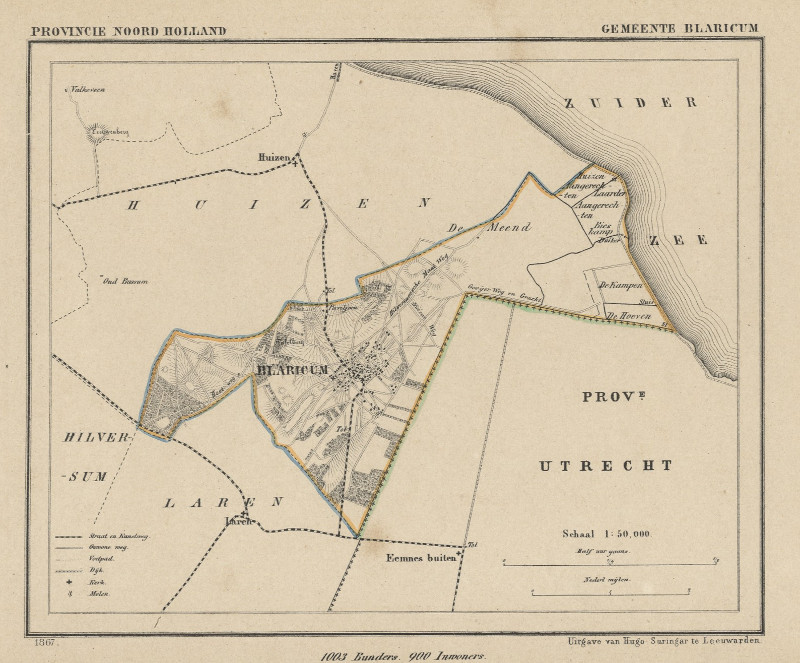 Antique map communityplan Gemeente Blaricum (Noord-Holland) | ||||||||||||||||||