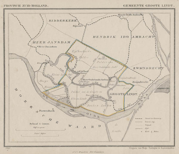Antique map communityplan Gemeente Groote Lindt (Zuid-Holland) | ||||||||||||||||||