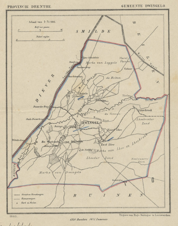 Antique map communityplan Dwingelo (Drenthe) | ||||||||||||||||||