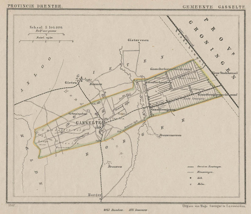 Antique map communityplan Gasselte (Drenthe) | ||||||||||||||||||