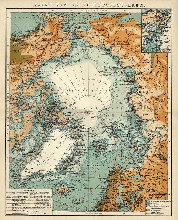 Antique map Kaart van de Noordpoolstreken | ||||||||||||||||||