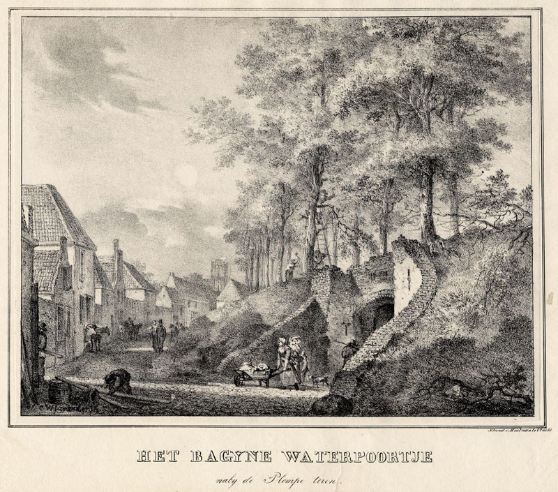 Antique view Het Bagyne Waterpoortje nabij de Plomple toren (Utrecht in Utrecht) | ||||||||||||||||||