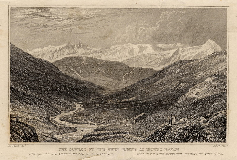 Antique view The source of the Fore Rhine at Mount Badus (Rijn in Switzerland) | ||||||||||||||||||